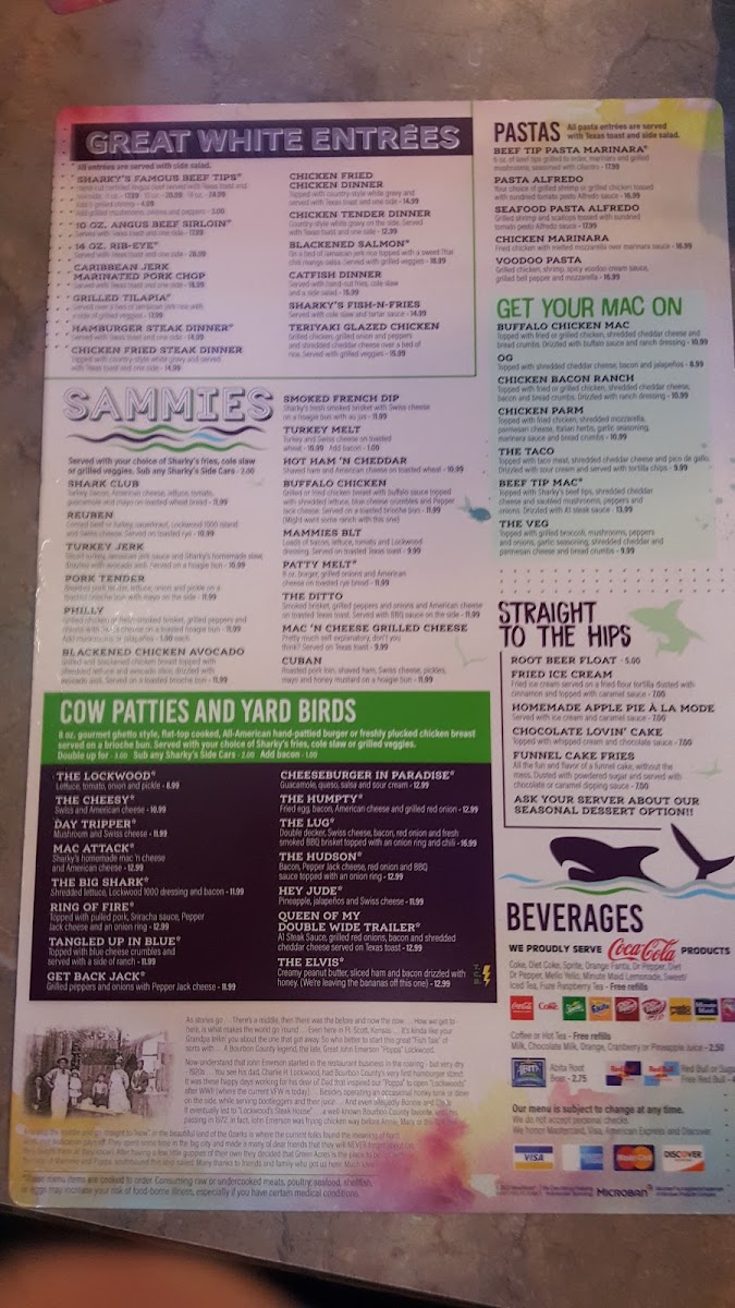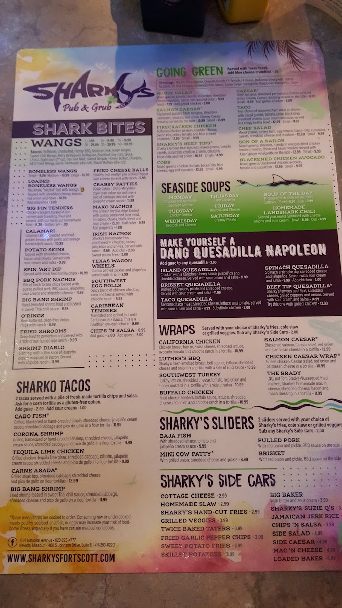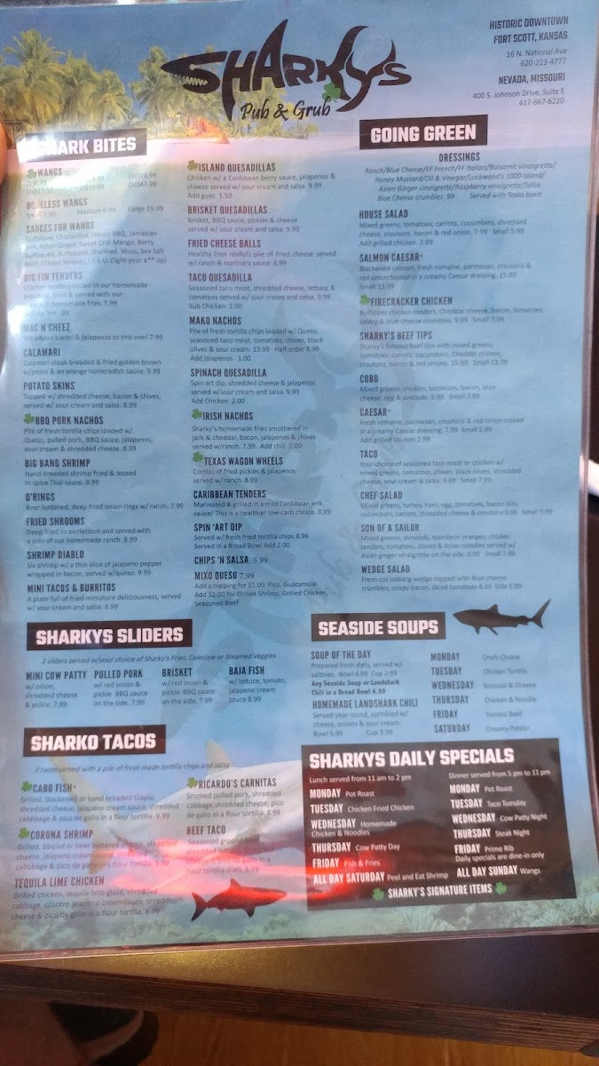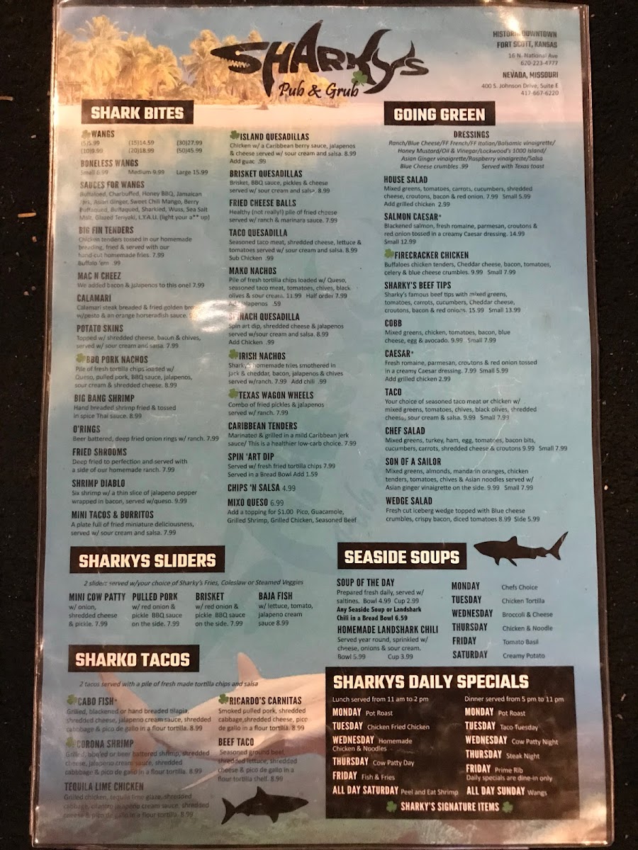 Sharky's Pub & Grub Menu